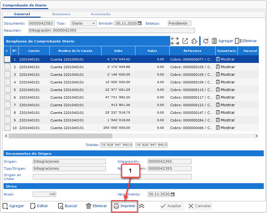 Despues de generar el Comprobante de Diario, podemos consultarlo en el módulo de Comprobante de Diario, para ello debemos: