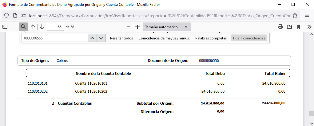 cuando termine la generación del Comprobante de Diario.