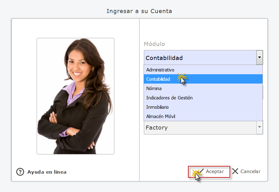 a. Al iniciar eFactory, Seleccionamos la Aplicación