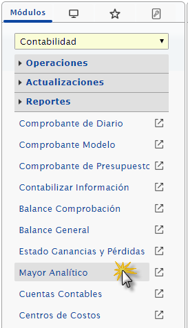 a. Cuando seleccionemos "Mayor Analítico" se nos desplegara un panel, donde deberemos abrir la lista desplegable como muestra la imagen y seleccionaremos "Mayor Analítico"
