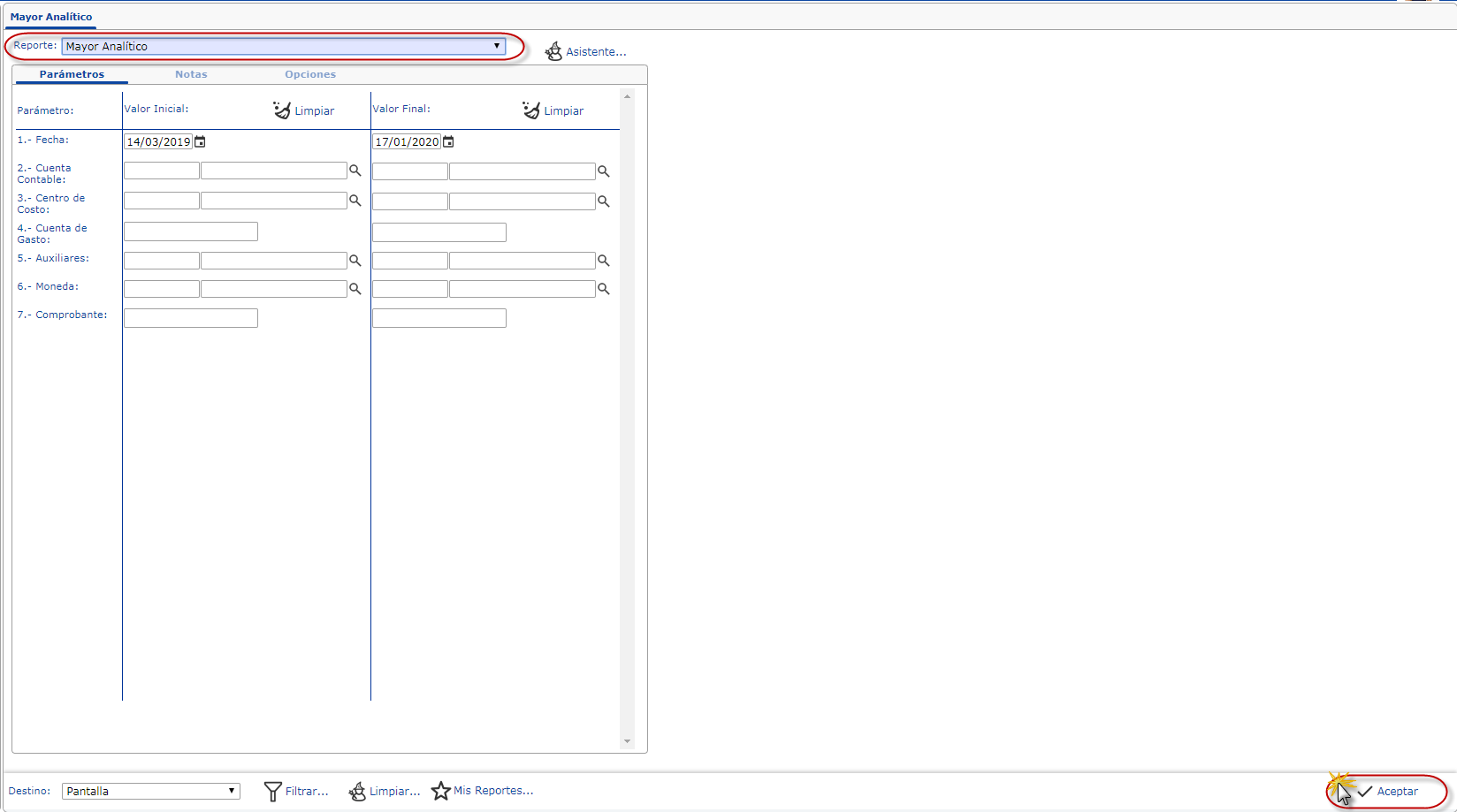 Para imprimir el Mayor Analítico debe seguir los siguientes pasos: