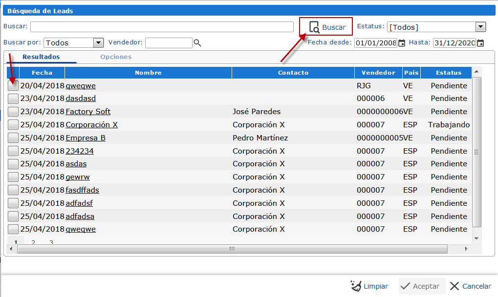Te mostramos los pasos para realizar una búsqueda sobre Leads, en el módulo Fuerza de Ventas.