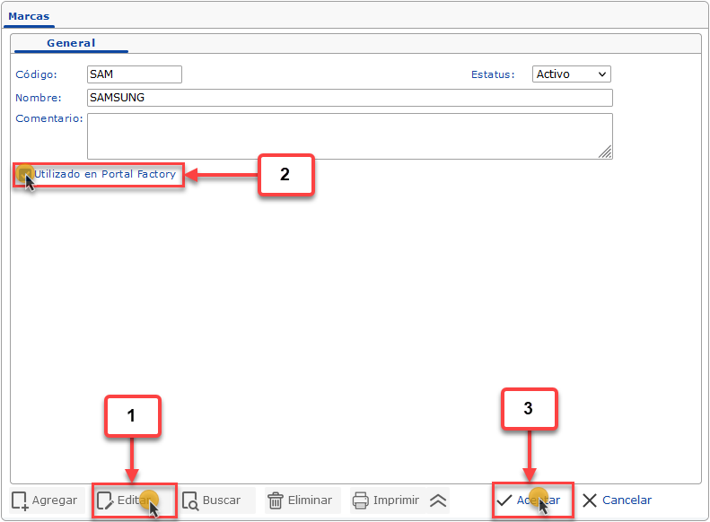 para guardar la actualización de la Marca.