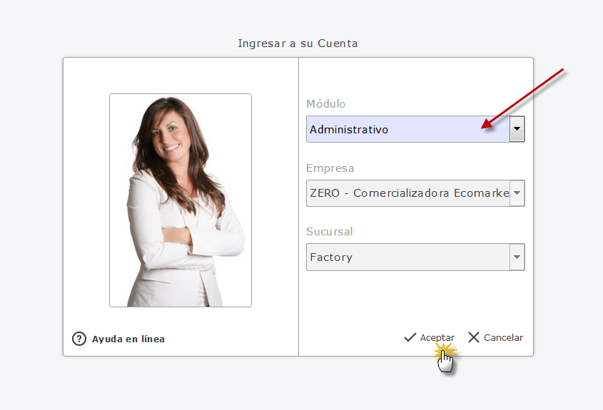 a. Al iniciar eFactory, Seleccionamos la Aplicación