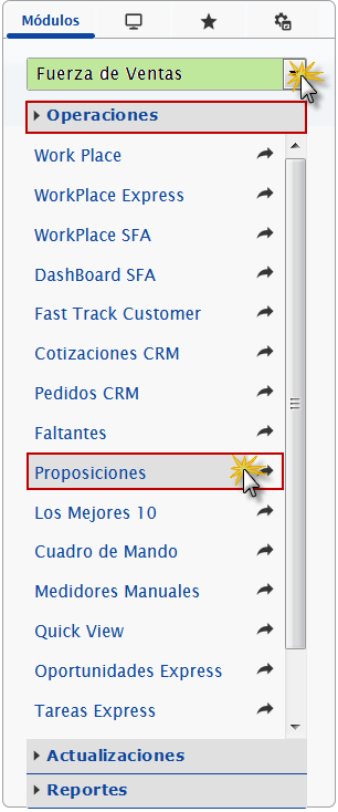 b. En el módulo Fuerza de Ventas, desplegamos el componente Operaciones y activamos el sub componente Proposiciones.