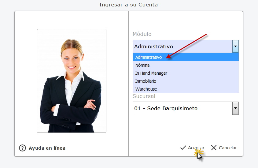 Administrativo y presionamos el botón