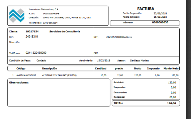 Nota: Cada factura se muestra en una página nueva.