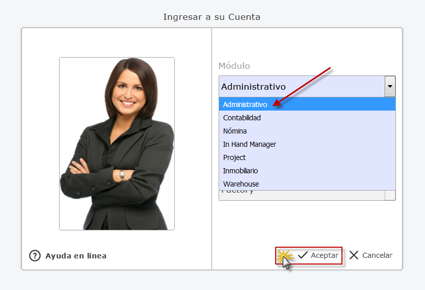 Administrativo y presionamos el botón