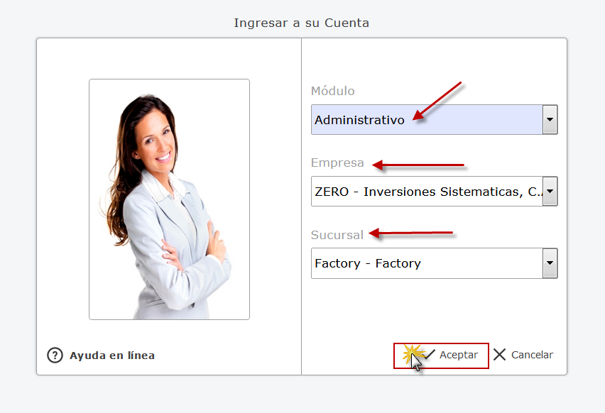 Administrativo y presionamos el botón