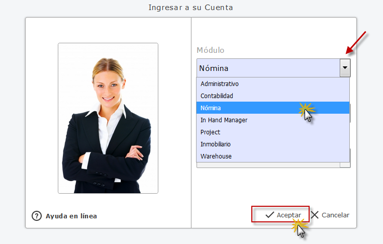 a. Primero deberemos Ingresar con nuestro Usuario y Clave presionaremos "Iniciar Sección", Al iniciar eFactory, Seleccionamos el sistema