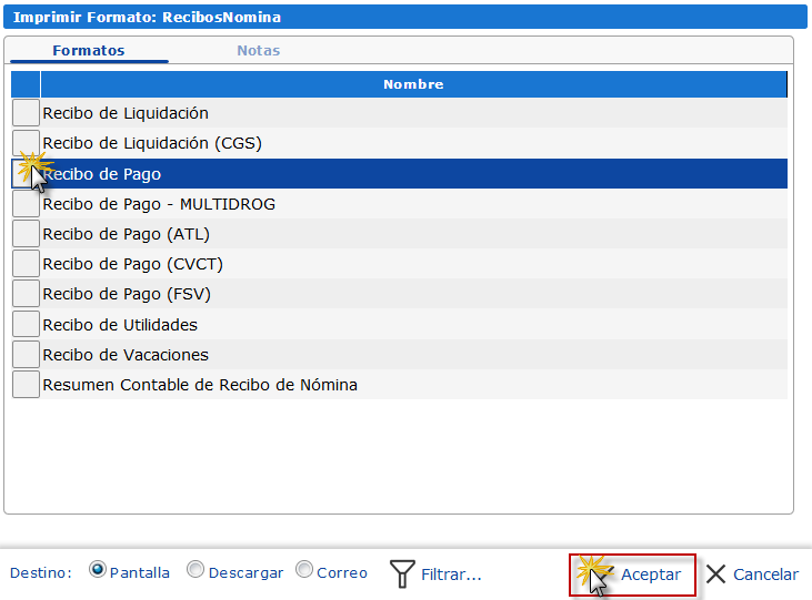 b. En el cuadro que se muestra, seleccionamos Recibo de Pago y presionamos el botón