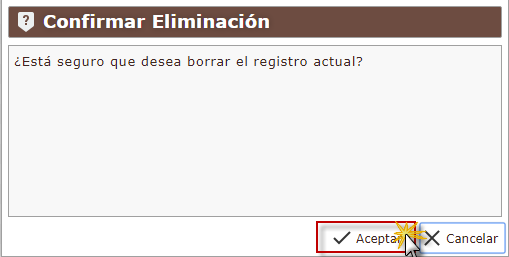 b. Después se nos muestra un cuadro de Confirmar Eliminación el cual debemos presionar el botón de