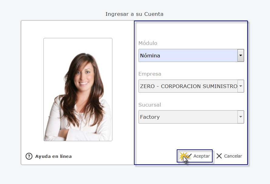 a. Al iniciar eFactory, Seleccionamos la Aplicación