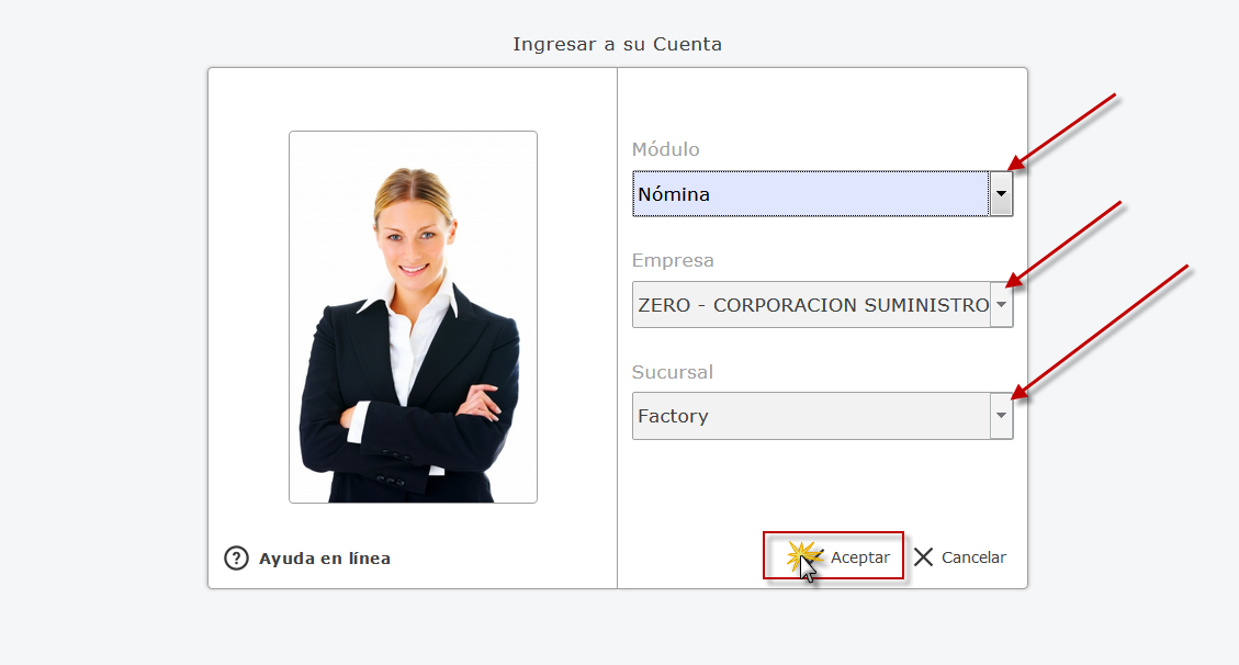 Nómina y presionamos el botón