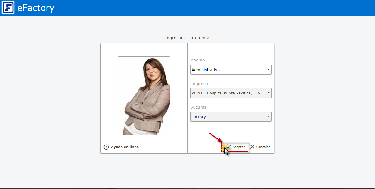 a. Para iniciar en eFactory tenemos que ingresar con nuestro Usuario y Contraseña y seleccionar el botón