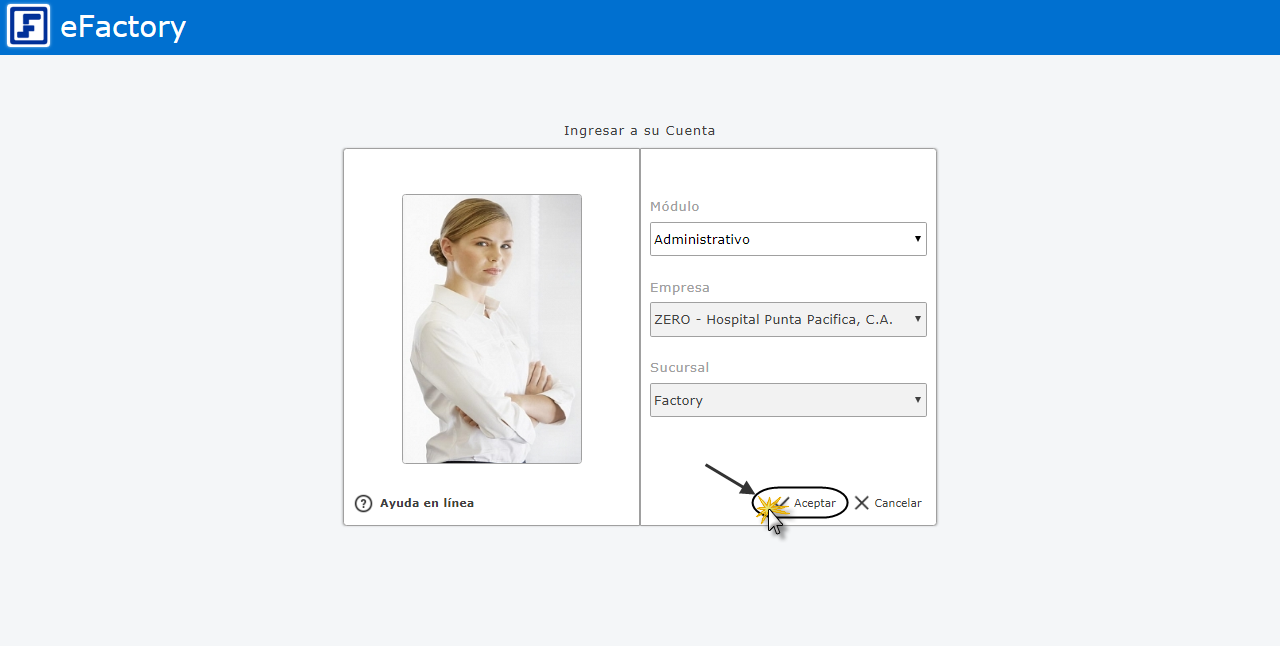 a. Para iniciar en eFactory tenemos que ingresar con nuestro Usuario y Contraseña y seleccionar el botón