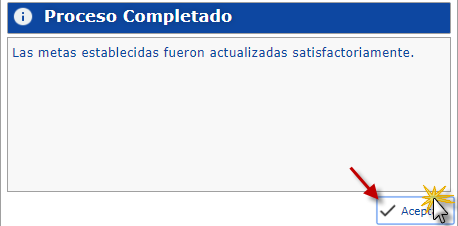 c. Después se muestra una ventana avisando que el proceso fue completado satisfactoriamente la Metas de Ventas por Artículos Mensualmente.