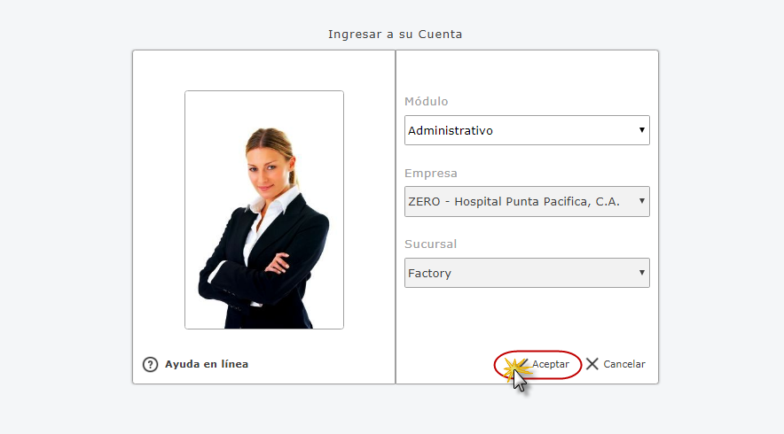 Administrativo Empresa y Sucursal de la Empresa y presionamos el botón