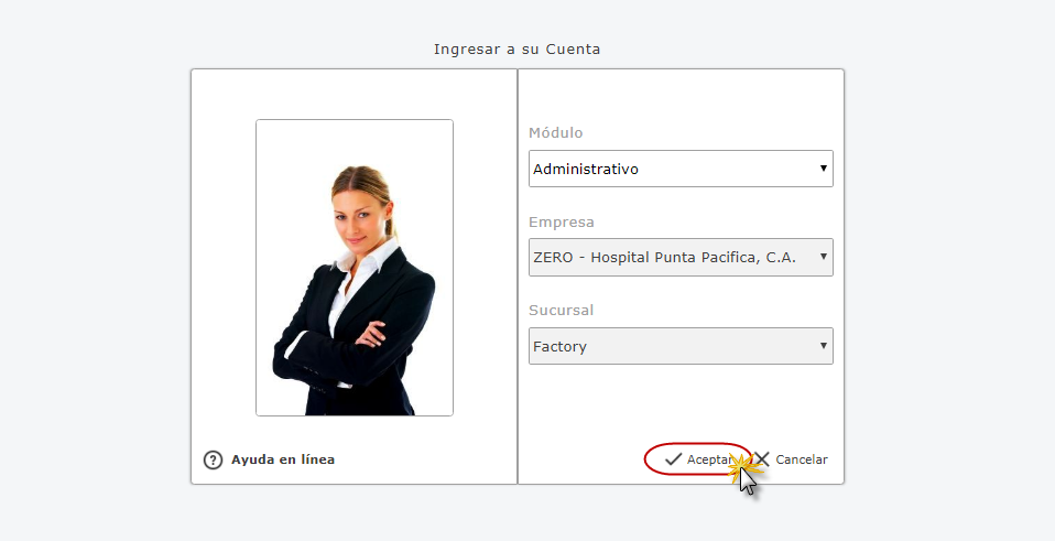 Administrativo Empresa y Sucursal de la Empresa y presionamos el botón