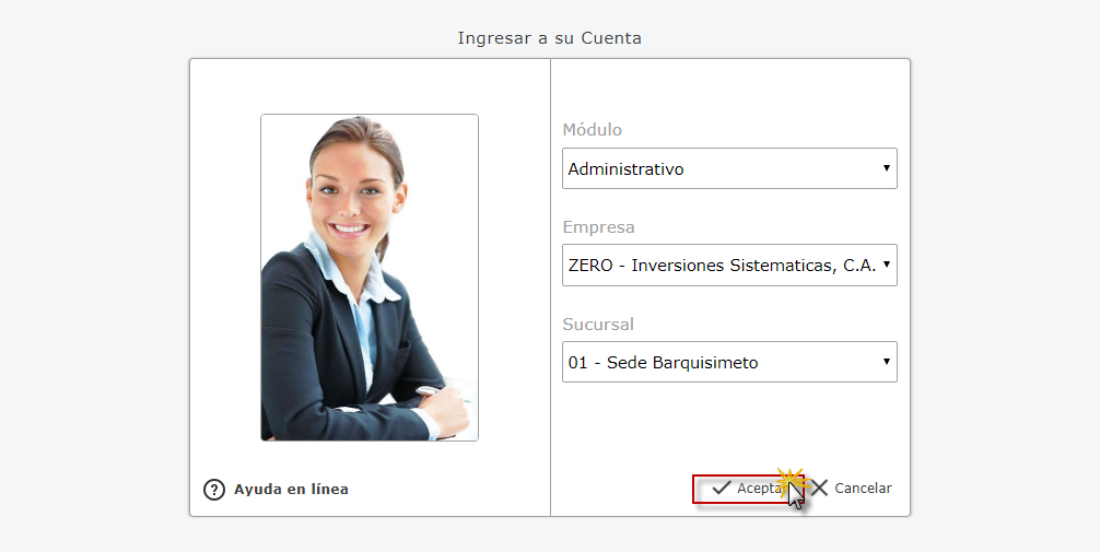 Administrativo, Empresa y Sucursal de la Empresa y presionamos el botón