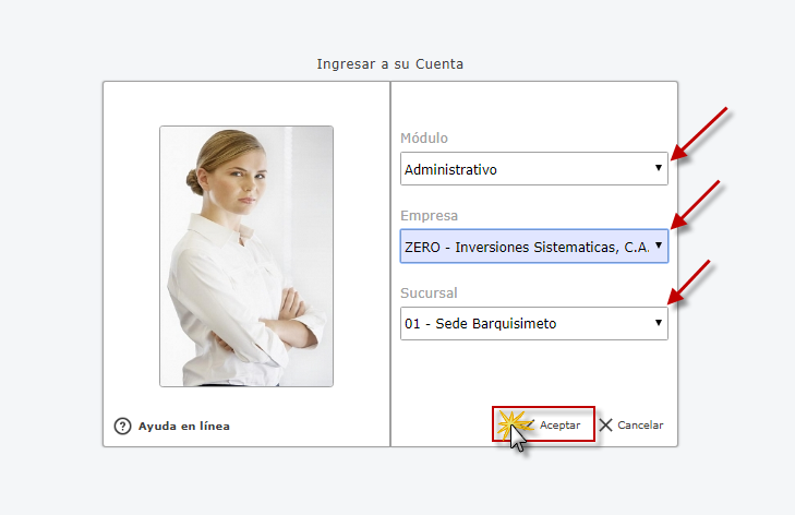 a. Al iniciar eFactory, Seleccionamos la Aplicación