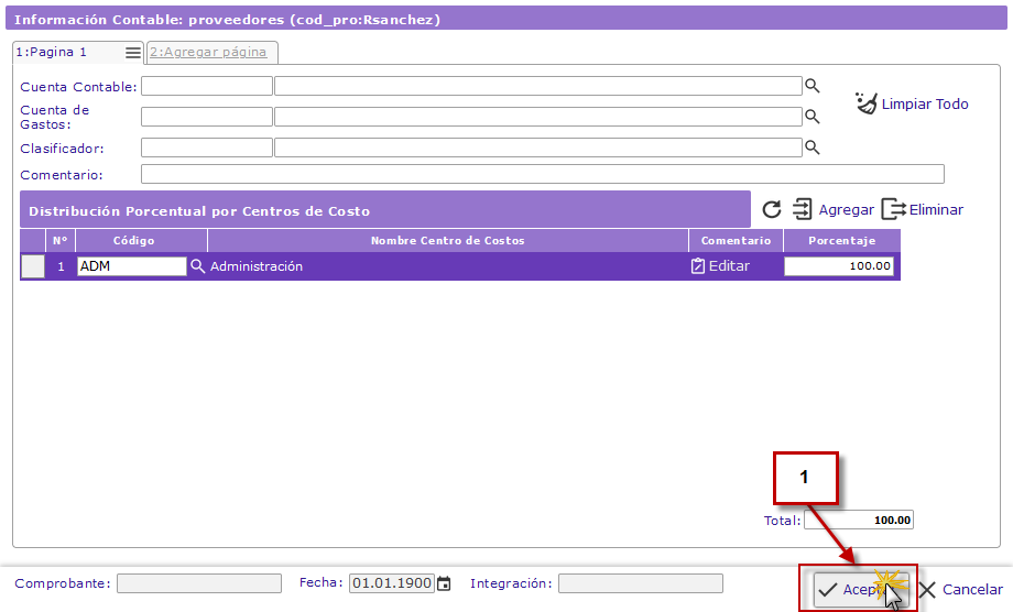a la izquierda del Centro de Costos deseado y presionaremos el botón