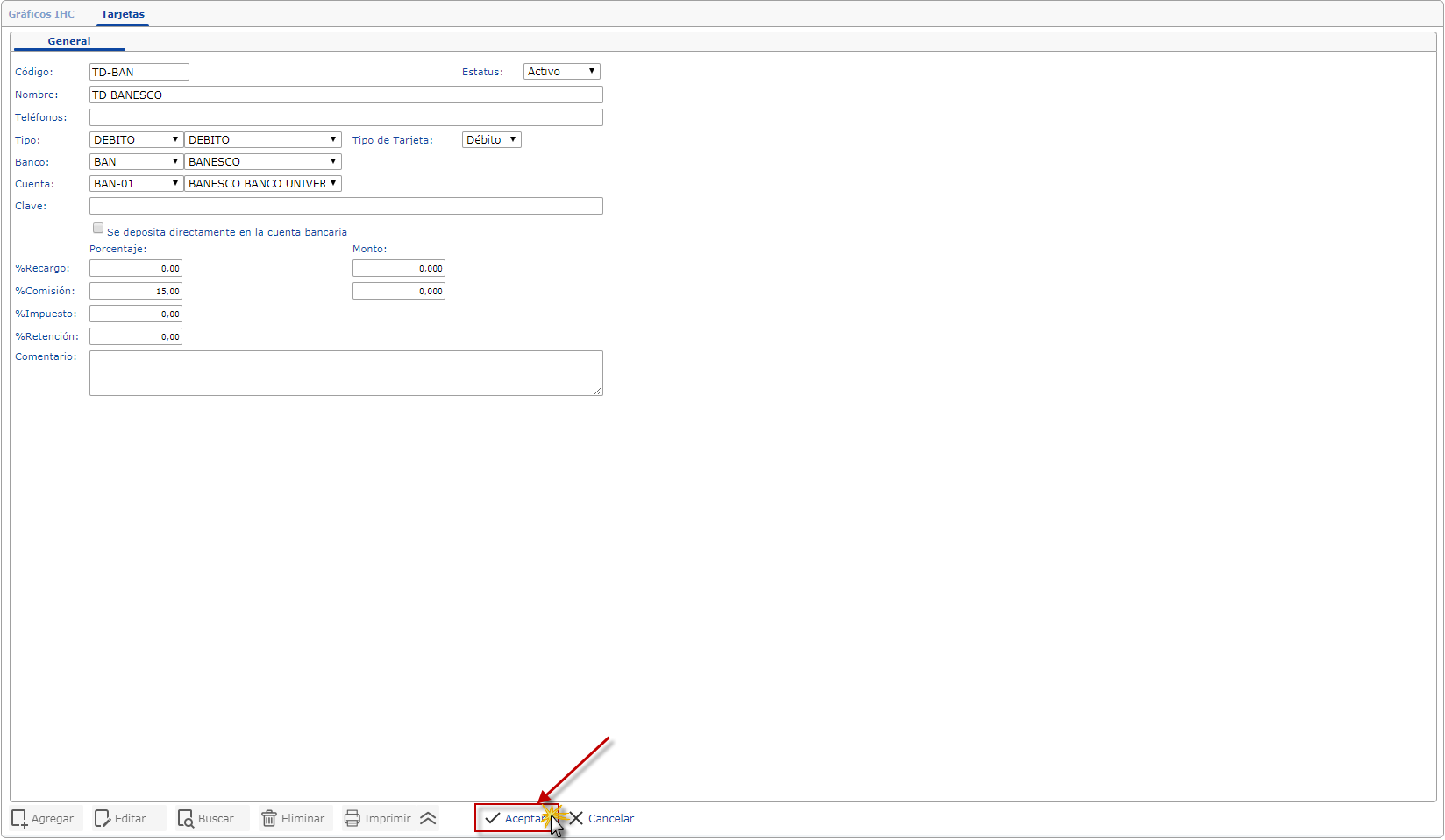 Nota: Activa los cobros y los bancos asociados a esta Tarjetas.