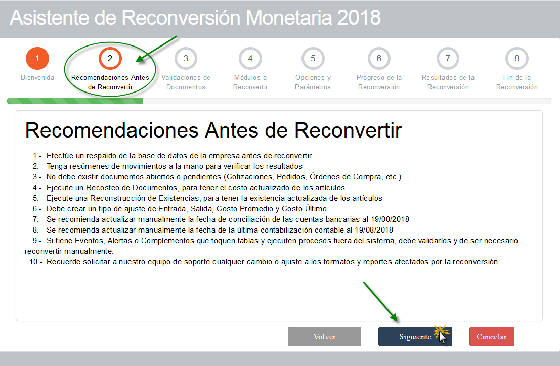 Asistente de Reconversión Monetaria 2018, tenemos 8 Instrucciones que debemos seguir para