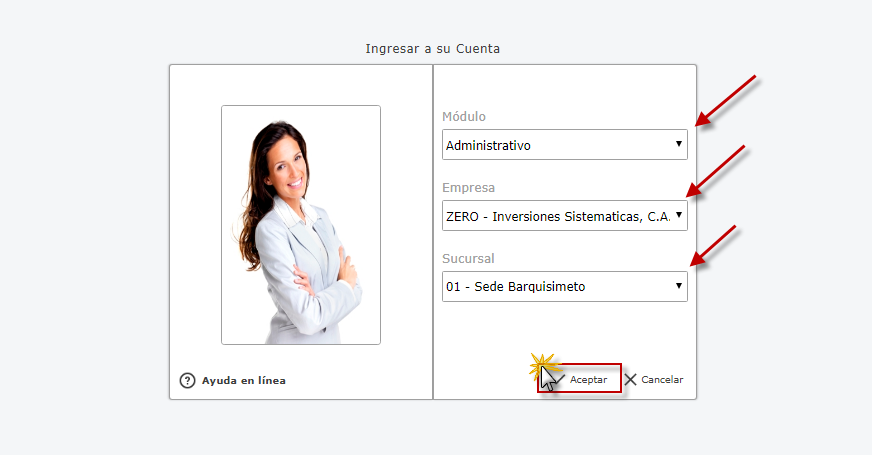 Administrativo y presionamos el botón