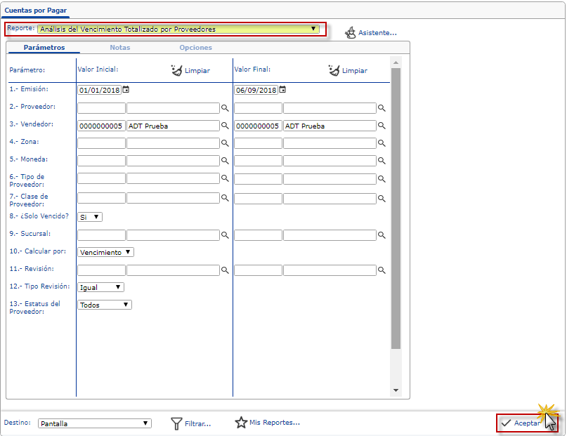 Veamos cómo preparar y emitir un Análisis del Vencimiento Totalizado por Proveedores en el Módulo Compras.