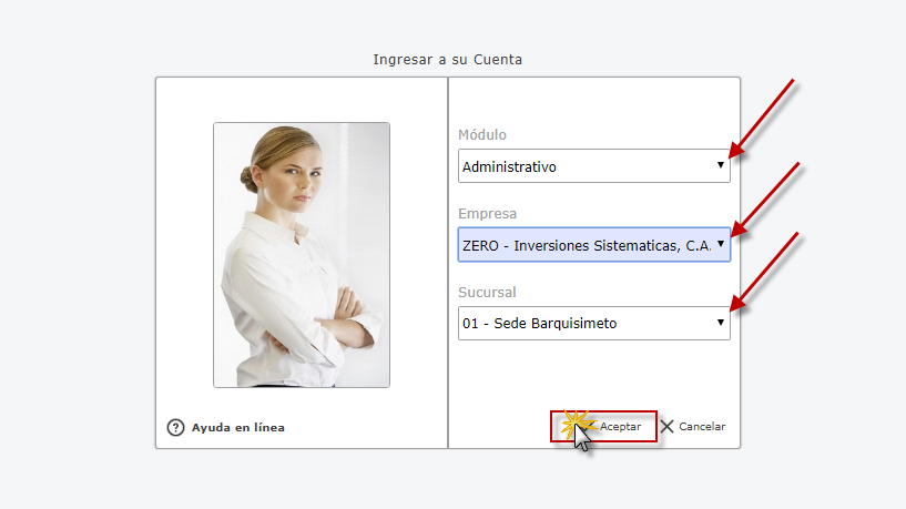 Administrativo y presionamos el botón