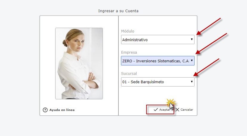 Administrativo y presionamos el botón