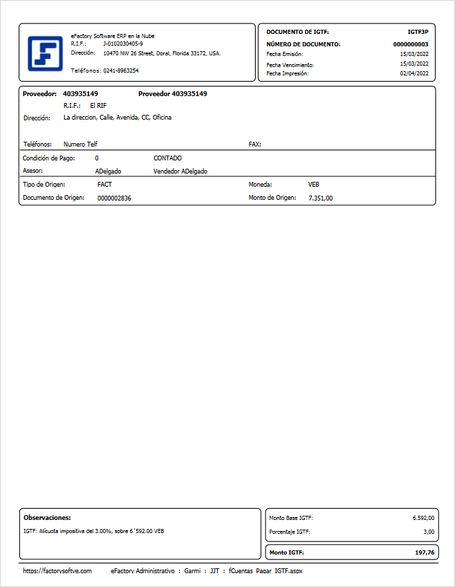 se mostrará el Formato de IGTF, el cual muestra la información del IGTF aplicado.