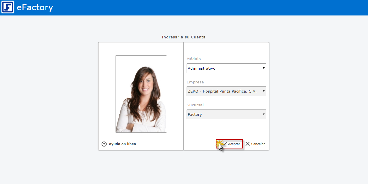 a. Al iniciar eFactory con nuestro Usuario y Contraseña, Seleccionamos la Aplicación