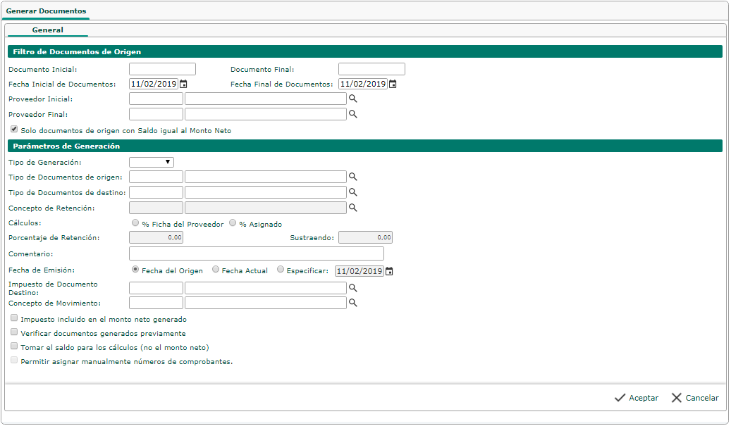 NOTA: Filtros obligatorio: Fecha Inicial de Documentos, Fecha Final de Documentos, Proveedores Inicial y Proveedores Final.