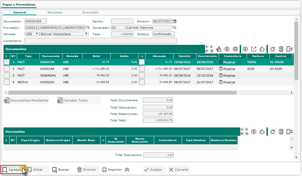 b. Luego procedemos a buscar el proveedor, para obtener sus facturas, después seleccionaremos el botón de