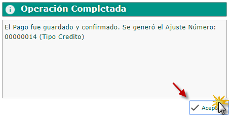 nos muestra una ventana de Operación Completada donde nos informa que el pago de la factura fue ejecutada. Luego seleccionaremos el botón