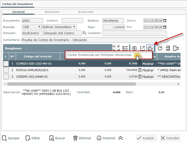 Veamos los pasos para realizar cortes de inventarios por múltiples ubicaciones en el Módulo de Inventarios.