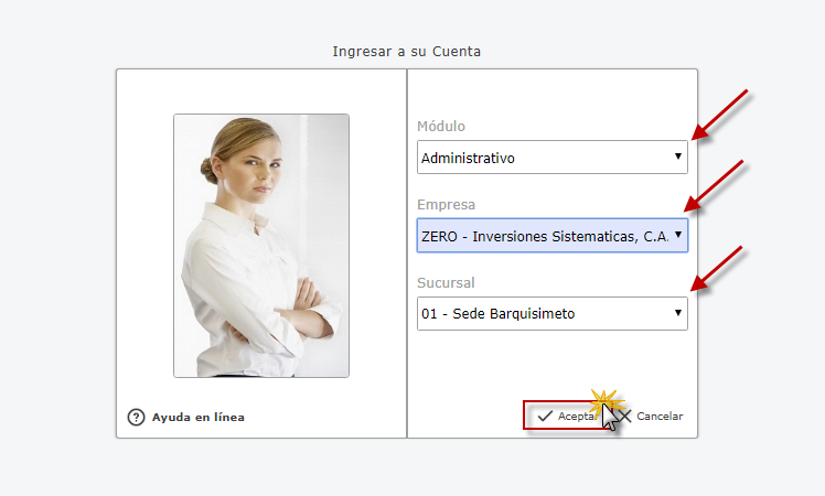 Administrativo y presionamos el botón