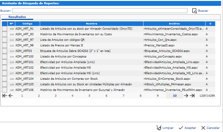 Reporte, seleccionamos el item
