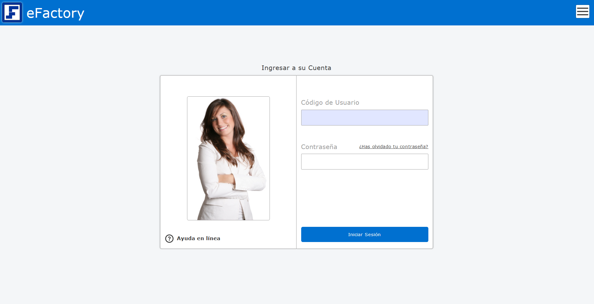 a. Al iniciar en eFactory con nuestro Usuario y Contraseña, Seleccionaremos la Aplicación