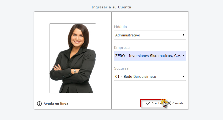 a. Al iniciar eFactory, Seleccionamos la Aplicación
