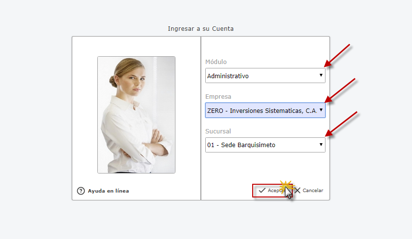 Administrativo y presionamos el botón