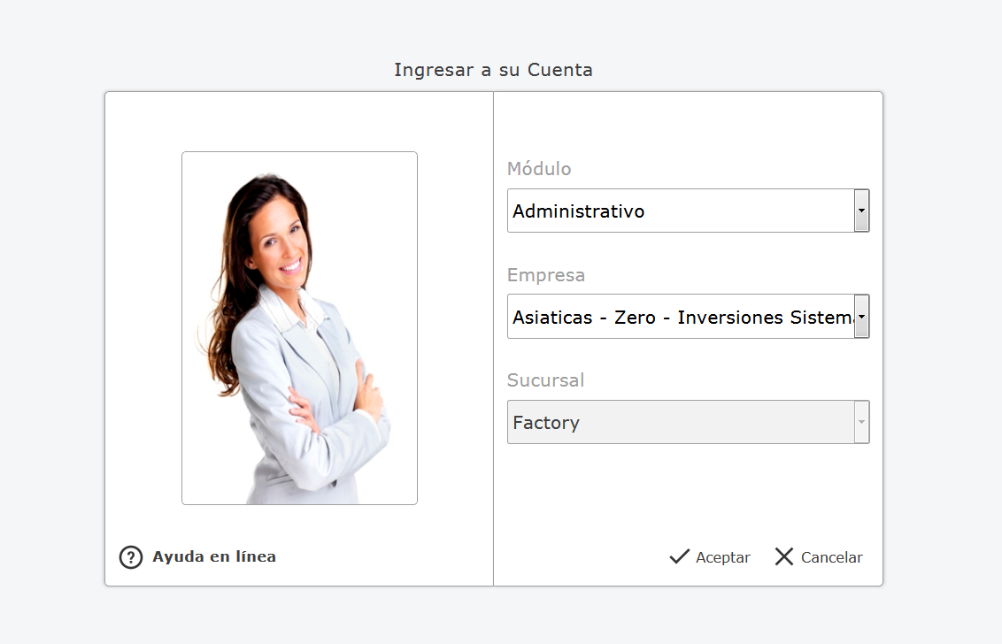 a. Al iniciar eFactory, Seleccionamos la Aplicación