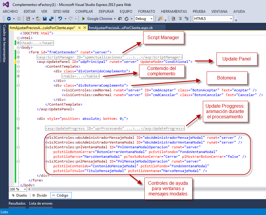 Veamos ahora el contenido del archivo ASPX: