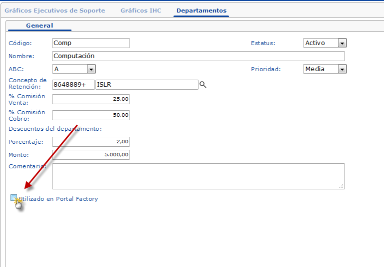 luego de esto solo presionaremos la casilla "Utilizado en Portal Factory" y guardaremos los cambios presionando el bóton