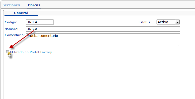 luego de esto solo presionaremos la casilla "Utilizado en Portal Factory" y guardaremos los cambios presionando el bóton