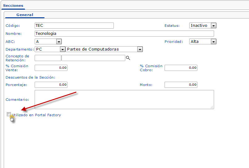 luego de esto solo presionaremos la casilla "Utilizado en Portal Factory" y guardaremos los cambios presionando el bóton