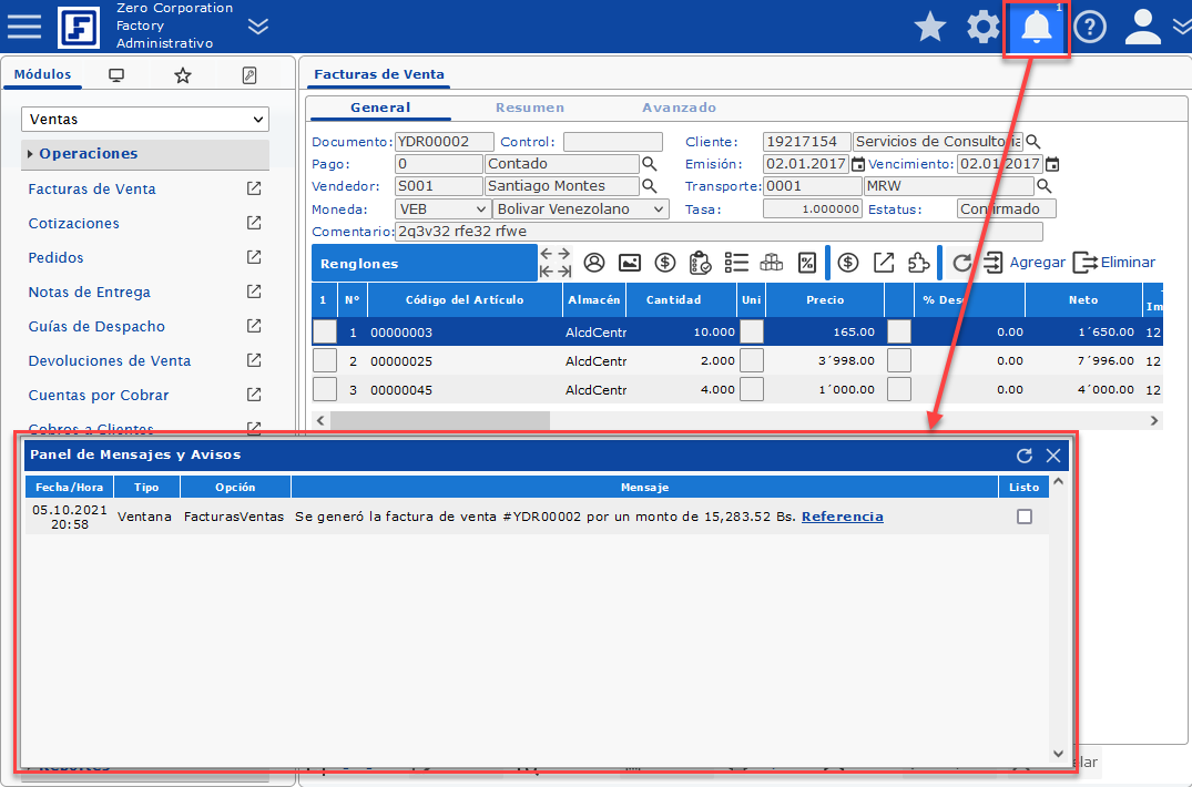 Se ha creado una Factura de Ventas por un monto de 14.128,17 VEB