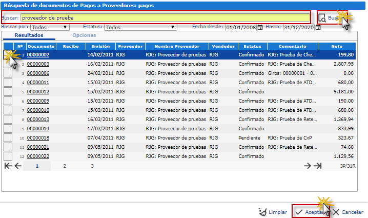 Pagos a Proveedores hacemos clic en el botón